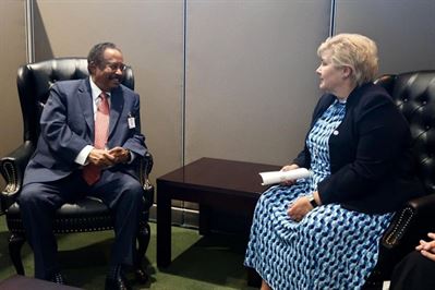 والتقى حمدوك اليوم الأربعاء بنيويورك الأميركية، برئيسة وزراء مملكة النرويج، أرنا سولبرك.