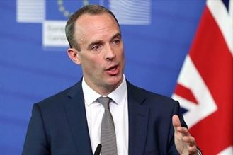 وزير الخارجية البريطاني دومينيك راب في لندن يوم أول يوليو تموز 2020. تصوير: هانا مكاي – رويترز.