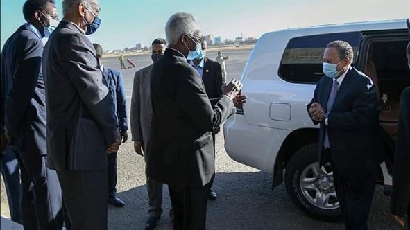 غادر دولة رئيس مجلس الوزراء د. عبد الله حمدوك إلى عاصمة جمهورية إثيوبيا الفدرالية الديموقراطية، أديس أبابا، في زيارة تستغرق يومين، يرافقه فيها كل من وزير الخارجية المُكلّف عمر قمر الدين، ومدير جهاز المخابرات العامة، الفريق أول ركن جمال عبد المجيد، ونائب رئيس هيئة أركان قوات الشعب المسلحة للعمليات الفريق ركن خالد عابدين الشامي، واللواء ركن ياسر محمد عثمان، مدير هيئة الاستخبارات العسكرية، وكان في وداع رئيس الوزراء السفير عمر بشير مانيس، وزير شؤون مجلس الوزراء.