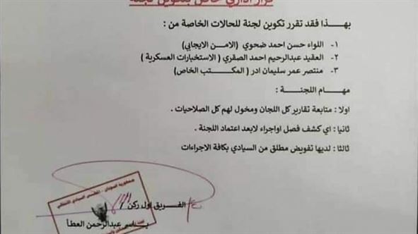 تداولت الوسائط الإعلامية خلال يوم الاثنين ٢٨ ديسمبر ٢٠٢٠م مستنداً بتوقيع الفريق الركن ياسر العطا يقضي بتشكيل لجنة، من ممثل الأمن الايجابي، والاستخبارات، والمكتب الخاص، وأن مهمتها مراجعة كل التقارير، و الكشوفات، وأن لديها كل الصلاحيات، والذي يتضح أنه خطاب مزور بالكامل.