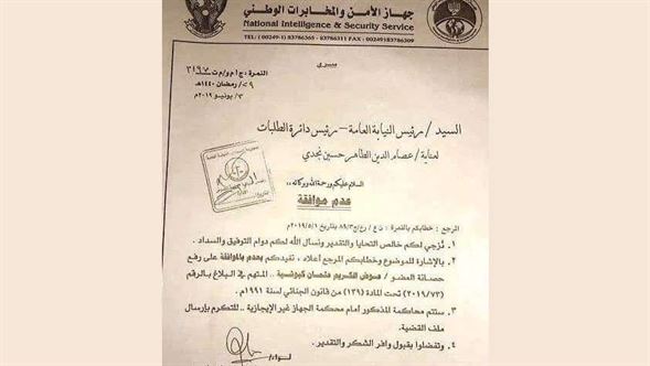 رفض جهاز الأمن رفع الحصانة عن فرد جهاز الأمن عوض الكريم عثمان كبوشية المتهم بإطلاق النار على الطالب سامر بشرى حماد أبتر ، والذي تم فتح بلاغ فيه بالرقم 73 / 2019 تحت المادة 139 من القانون الجنائي .